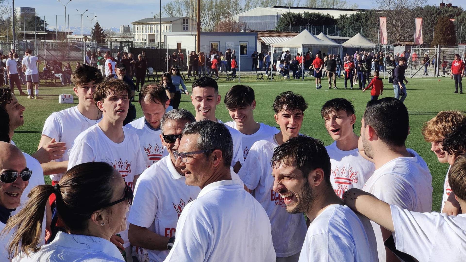 Serviva una vittoria nello scontro diretto con la Saviglianese per coronare il sogno Eccellenza (categoria che a Mondovì mancava dal 2016). Oggi, sul sintetico del Centro Sportivo Monregale in corso Francia, i ragazzi di Michele Magliano - sotto mentre viene sollevato al cielo - sono riusciti ad incantare i "Maghi" dell'ex tecnico Franco Giuliano. Avvio shock con la rete dell'ospite Chelarescu, poi nel giro di pochi minuti nella ripresa su due cross di Porcaro dalla sinistra i "galletti" ribaltano tutto: 1-1 di Magnino che stoppa e piazza la zampata sul secondo palo e 2-1 con Mulassano che svetta ed incrocia di testa. La chiude il "toro" Vella con una percussione centrale mettendo il sigillo sul match