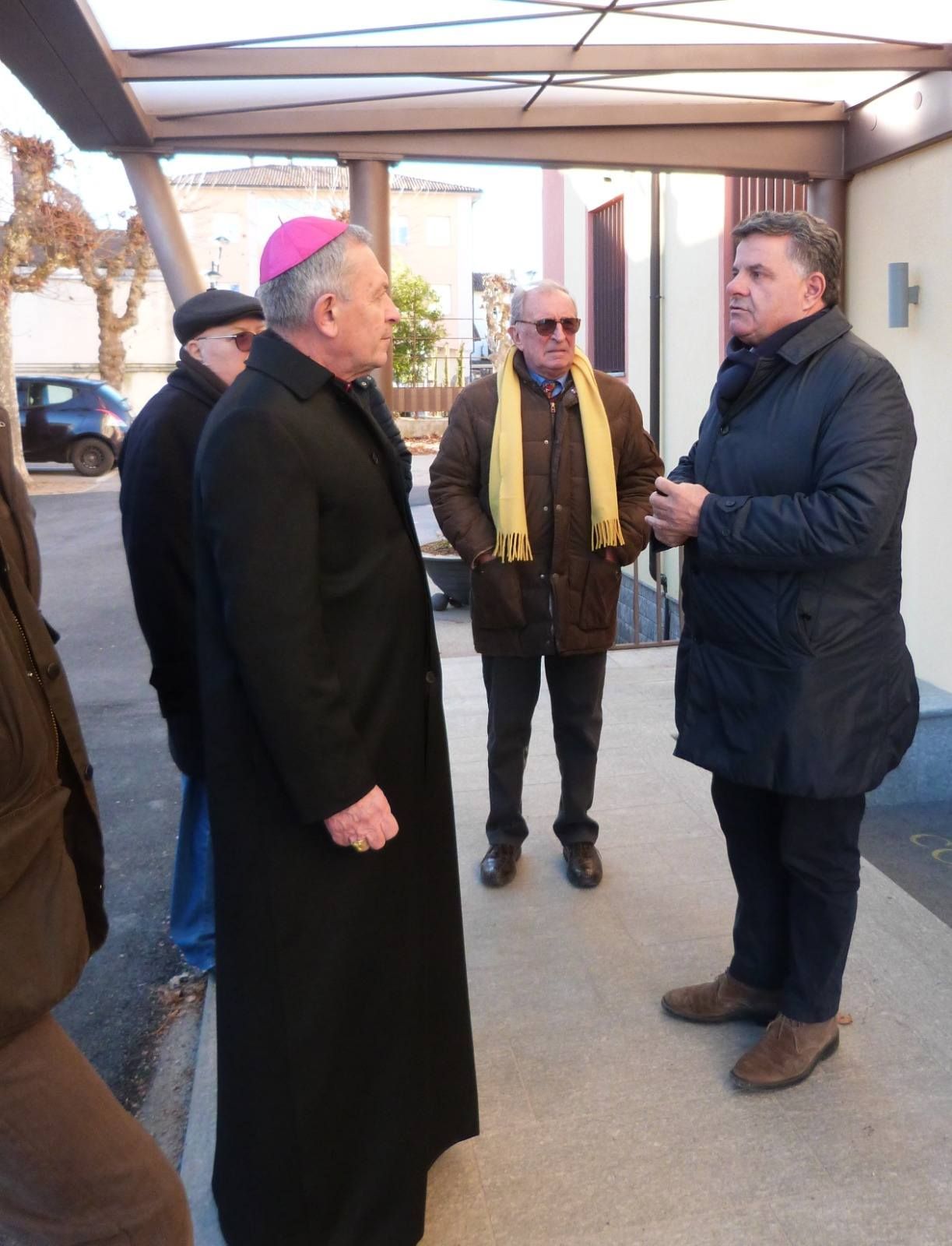 Domenica il vescovo della Diocesi di Mondovì, mons. Egidio Miragoli, si è recato a Pianfei per la visita pastorale. Prima ha celebrato le Messe in frazione Blangetti e nella parrocchiale di San Giovanni Battista. Quindi un momento di preghiera al cimitero e la visita in Municipio, dov’è stato ricevuto dal sindaco Marco Turco, dal vice Marco Rocca e da alcuni consiglieri comunali, oltre all’ex amministratore Piergiorgio Fulcheri. Il vescovo ha visitato il palazzo comunale, confrontandosi con gli amministratori sulle iniziative pianfeiesi per ogni fascia d’età, dal recente progetto “Pianteen” per i più giovani all’apprezzata realtà di Casa Mosè per la terza età.