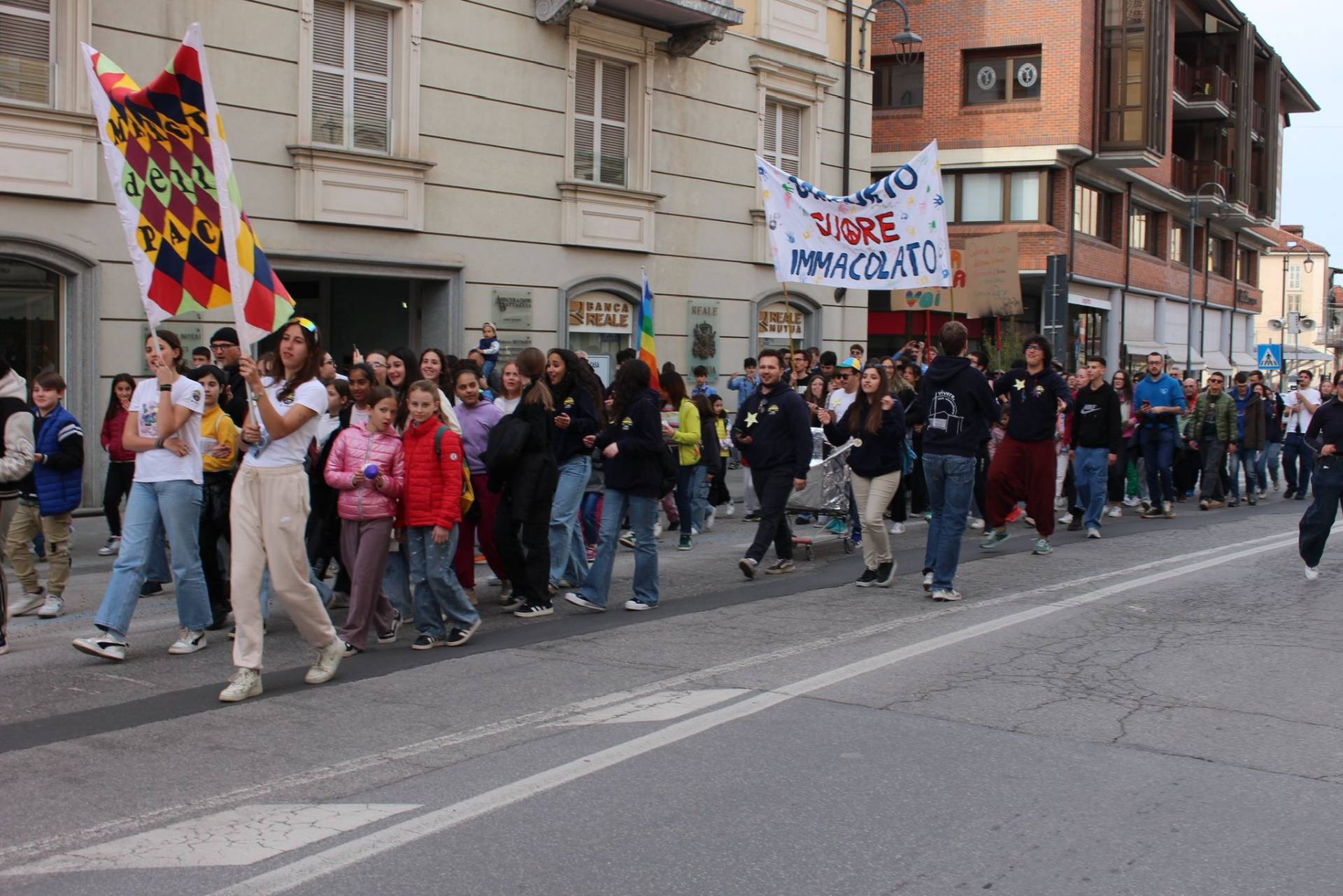 I giovani degli oratori diocesani si sono ritrovati in corso Statuto muniti di bandiere, cartelloni e striscioni per testimoniare l’urgente bisogno di pace. Dopo la sfilata per le vie del centro storico, si è svolta un’attività anche per le famiglie in piazza Cesare Battisti ed è stata composta la scritta “Pace” per una caratteristica foto dall’alto.