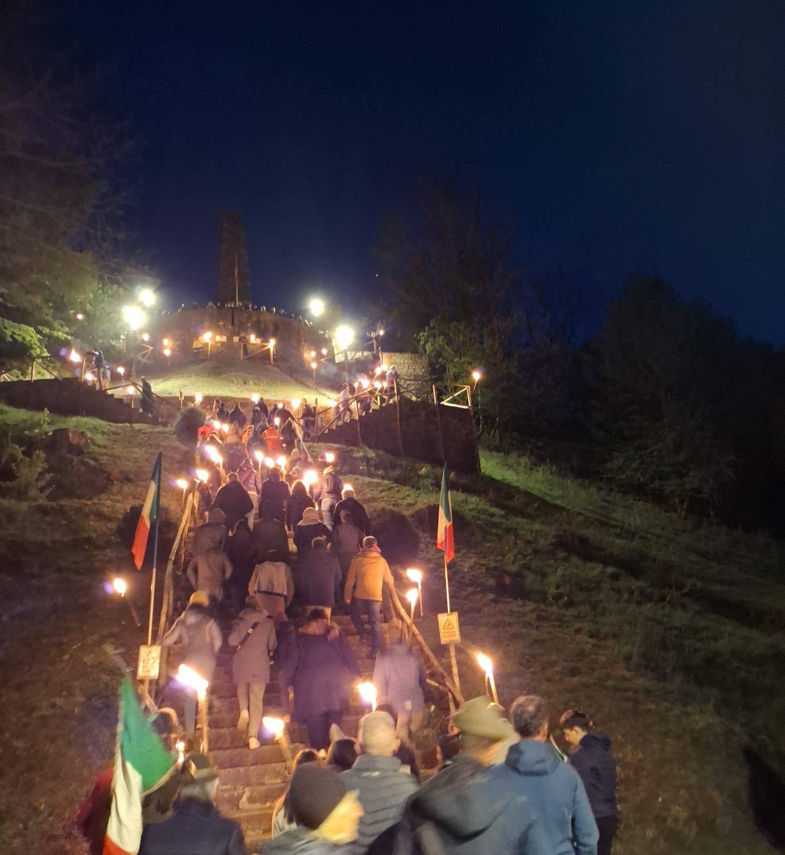 A Chiusa Pesio, invece, come sempre si è tenuta la suggestiva fiaccolata al Sacrario partigiano sopra Certosa. Una lunga scia di fiaccole ha illuminato il cielo per la Festa dell’identità italiana, ritrovata e rifondata dopo il buio del Fascismo.