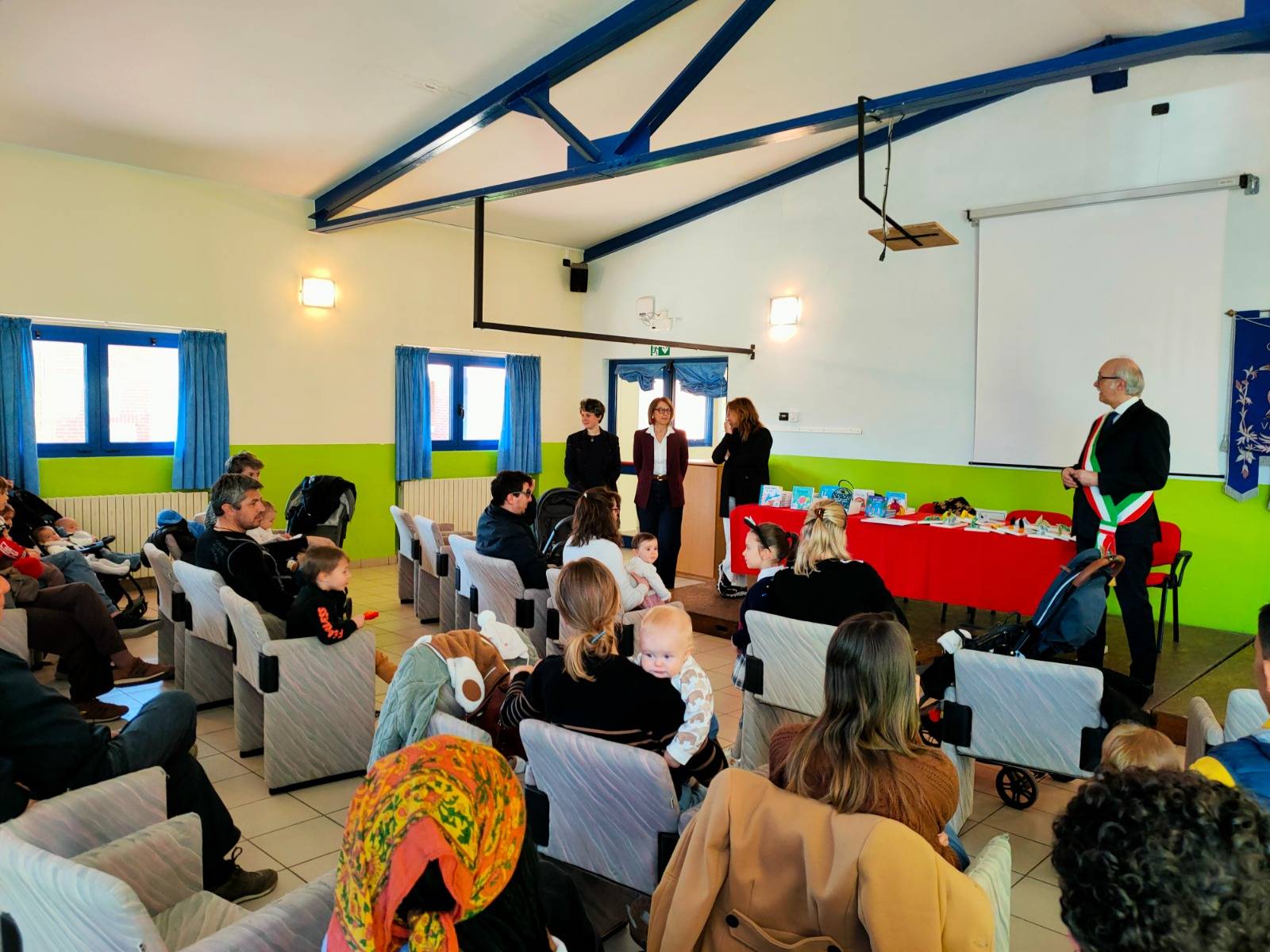 Ad ognuno dei partecipanti sono stati consegnati un attestato nominativo della giornata, un libro come invito alla lettura formulato nell’ambito dell’iniziativa nazionale “Nati per leggere” e un calco delle manine dei neonati, realizzato sul momento con plastilina, a ricordo di questo particolare momento. Erano presenti anche i fratellini e le sorelline più grandi: anche loro hanno ricevuto un libro omaggio come invito alla lettura.