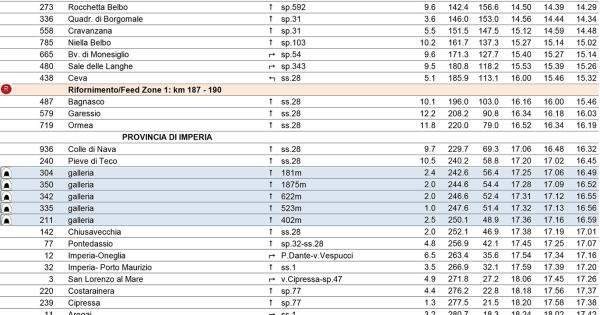 Le strade saranno chiuse nei vari passaggi, indicativamente, mezzora prima dell’orario indicato con la media più veloce e 15’ dopo il passaggio più lento (quello nella tabella ai 39 km/h), ad esempio a Garessio dalle 15.33 (30’ prima delle 16.03) alle 16.49 (15’ dopo le 16.34). Assolutamente sconsigliabile passare dalla Valle Tanaro nel pomeriggio per andare al mare.