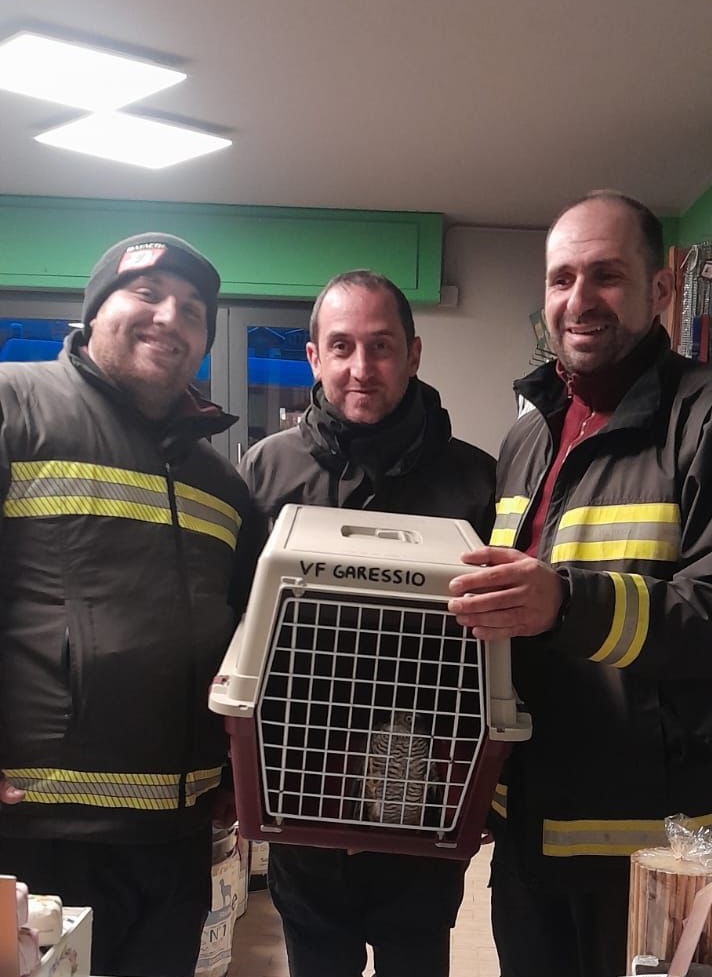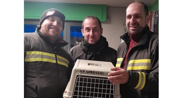 L'esemplare nel trasportino con i vigili del fuoco di Garessio