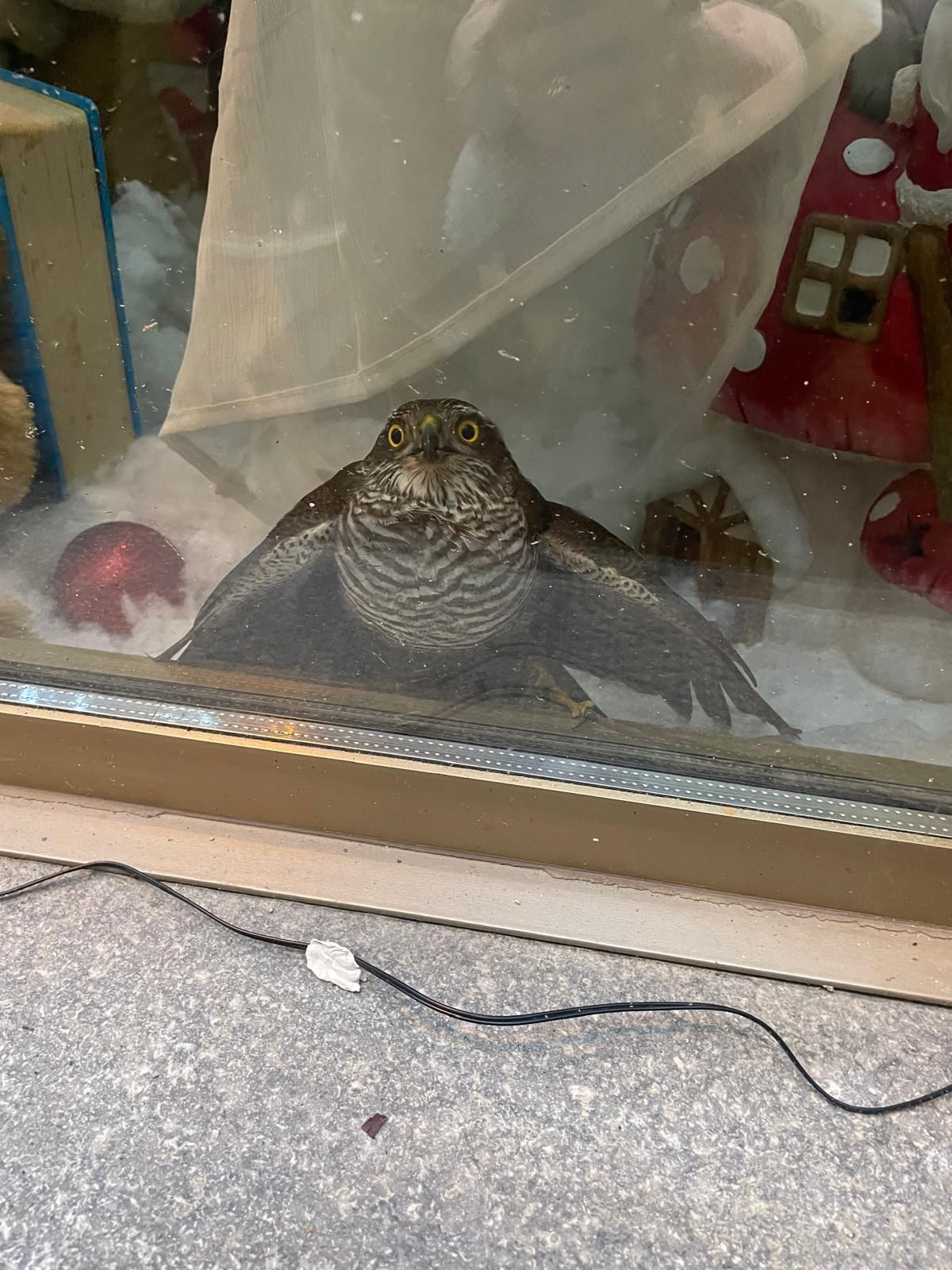 Si è conclusa nel migliore dei modi la disavventura di una splendida femmina di sparviere, protagonista sabato 20 dicembre di un insolito "fuori programma" nel centro di Garessio. L’allarme è scattato grazie alla segnalazione di una ragazza, che ha notato il rapace agitarsi dietro la vetrina di un negozio attualmente chiuso. Con ogni probabilità, l'esemplare si è infilato all'interno inseguendo una preda, forse un piccolo uccello o un roditore, attraverso un'apertura o un condotto, rimanendo poi prigioniero dei locali.