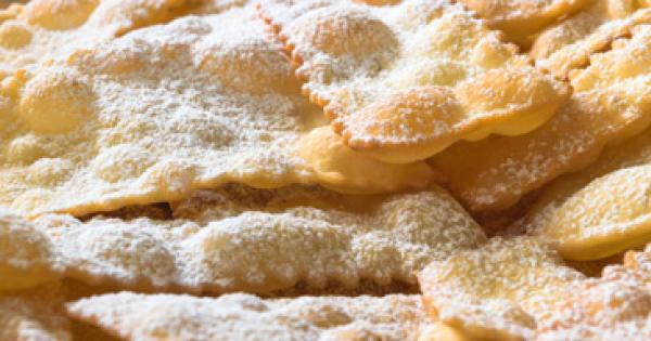 Riscaldate mezzo bicchiere d'olio in una padella larga e alta 4 dita: buttatevi le chiacchiere, poche alla volta fatela dorare e prelevatle con una schiumarola. Scolatele su carta assorbente e una volta fredde cospargetele di zucchero a velo.