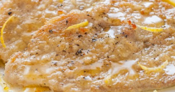 Ingredienti: 800 g di fesa di vitello a fette sottili, 1 limone, 1 spicchio d'aglio, farina, olio extravergine di oliva, 1 noce di burro, sale, pepe, prezzemolo