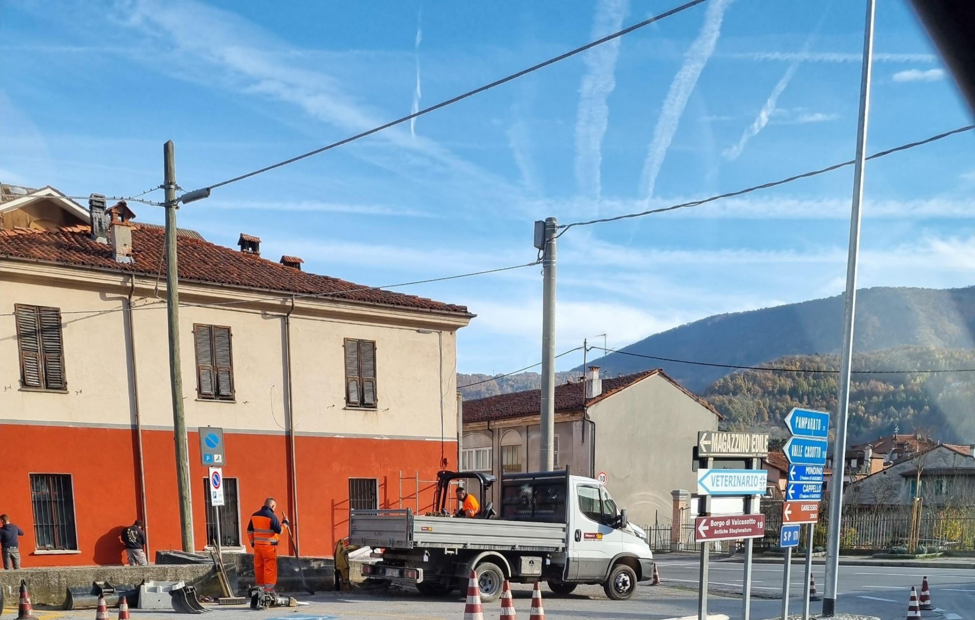 I lavori nel parcheggio al bivio tra SS28 e via Valcasotto