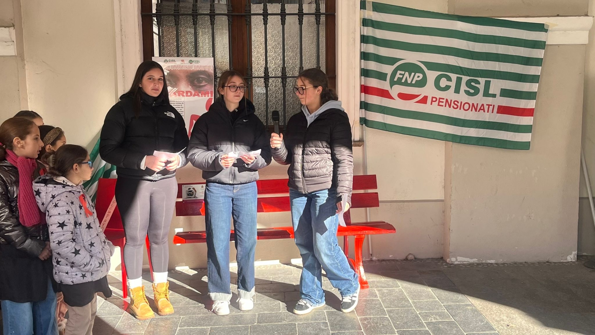 Stamattina (martedì 25 novembre) è stata inaugurata a Ceva la panchina rossa per dire no alla violenza sulle donne, la 24esima del progetto “Una panchina al mese perché un giorno solo non basta” della FNP Cisl Cuneo Coordinamento di genere. Alla cerimonia, coordinata da Fiorenza Sismondi, l'RLS di Ceva Mauro Cagno, il sindaco di Ceva Fabio Mottinelli, l'assessore alle politiche sociali Cinzia Boffano, la dirigente scolastica Simona Dellepiane, la responsabile di Futuro Donna Anna Ardissono, la segretaria provinciale CISL FNP Cuneo Adelaide Lamberti con il segretario regionale Alessio Ferraris, con loro la rappresentanza delle scuole cittadine..