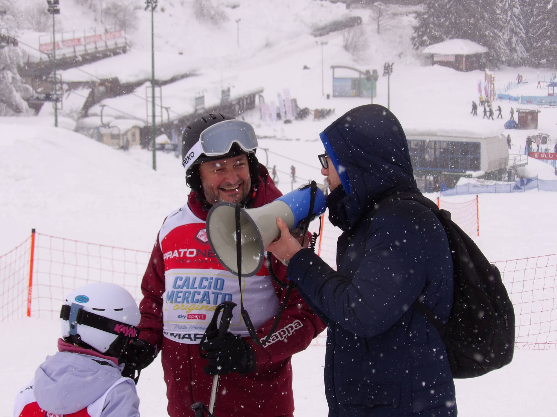 Gianluca Di Marzio vince la prima Sky Calciomercato Dual Race, parallelo di sci sulle nevi di Prato Nevoso: secondo Marchetti, terzo Quagliarella