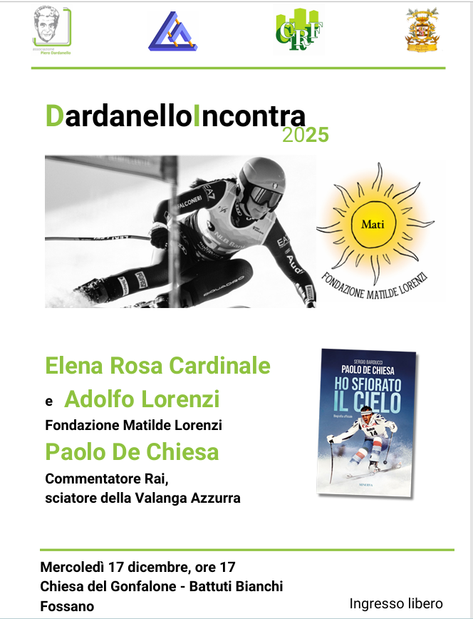 Mercoledì (17 dicembre), alle ore 17 grazie all’associazione Dardanello - con il sostegno della Fondazione CRF - i familiari della compianta Matilde Lorenzi dialogheranno con Paolo De Chiesa davanti agli studenti del Liceo Ancina nella Chiesa del Gonfalone a Fossano. Il crudele destino della sciatrice torinese, morta il 28 ottobre 2024 in Val Senales, si lega alla tragedia del genovese Matteo Franzoso, scomparso dopo un terribile incidente in Cile: due giovani promesse dello sci azzurro impegnate in un fitto programma di allenamenti, due morti inaccettabili che riportano al centro del dibattito la sicurezza sulle piste...