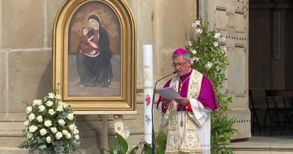 Il vescovo della Diocesi di Mondovì Egidio Miragoli commenta il periodo della pandemia da coronavirus durante la preghiera di affidamento alla Regina del Monte Regale al Santuario di Vicoforte