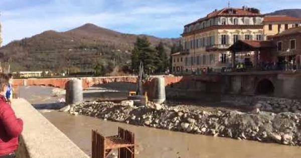 Garessio: altro angolo di visuale, si abbatte il ponte Odasso dopo l'alluvione 2020