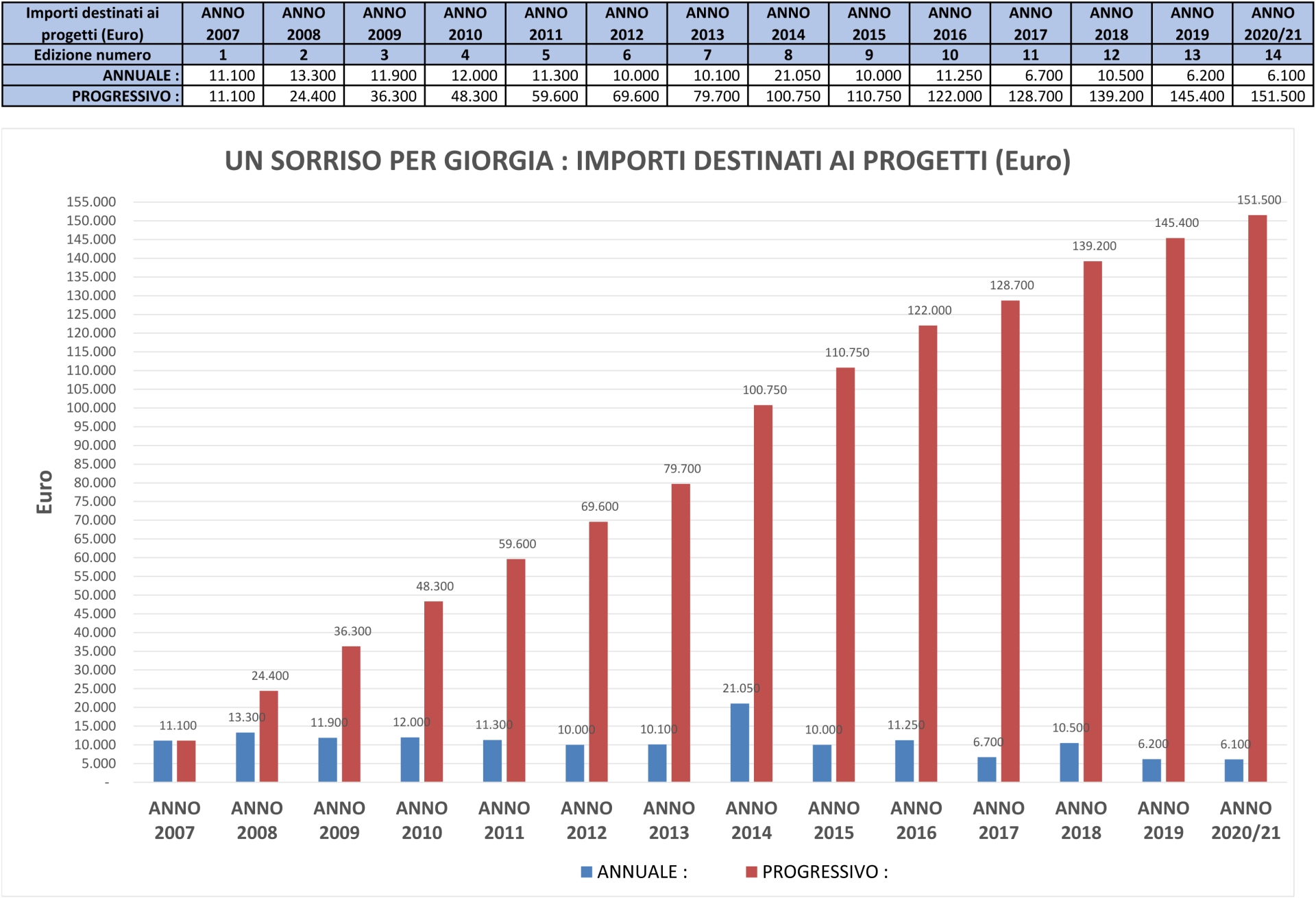 Ecco la tabella dei proventi di "Un sorriso per Giorgia" nel corso degli anni.