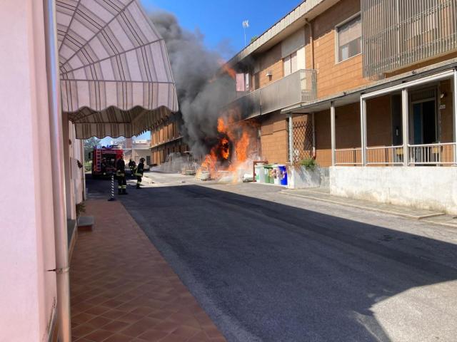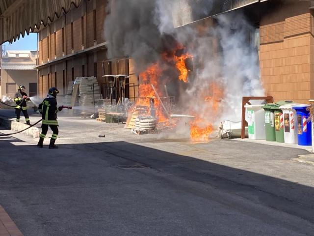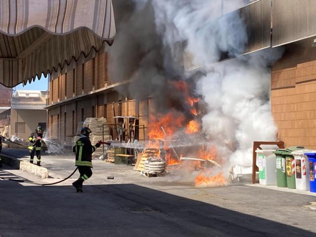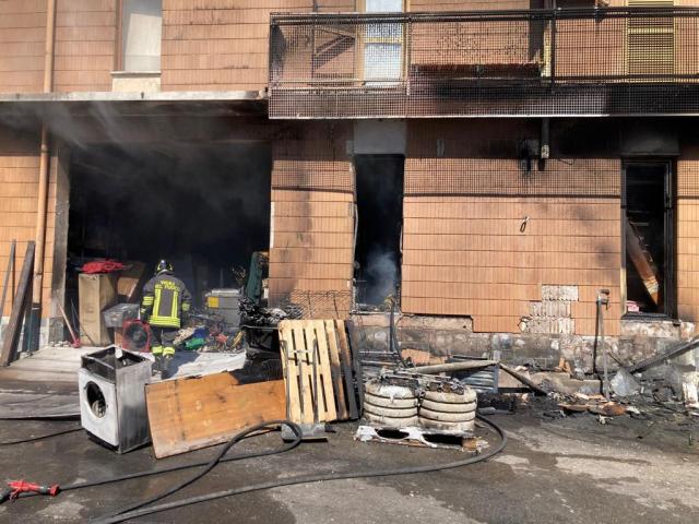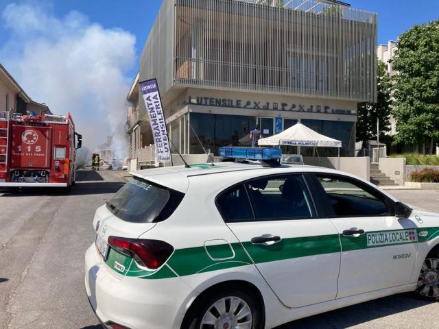 Le immagini dell'incendio in prossimità delle Utensilerie Robaldo in via Langhe a Mondovì. Ingenti i danno materiali. Fondamentale per contenerli il tempestivo intervento dei vigili del fuoco con la polizia locale ed i carabinieri.