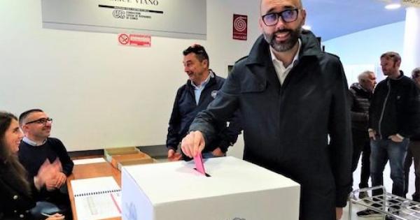 Luca Robaldo vota nel seggio di Cuneo