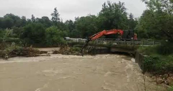 Maltempo: lo sgombero di rami e detriti dal ponte a San Biagio di Mondovì