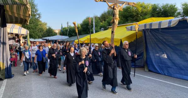 Mondovì - Vicoforte: la processione arriva al Santuario. Inizia la messa solenne con il vescovo Egidio Miragoli