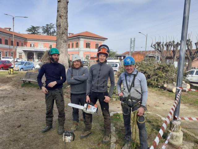 Oggi, 15 febbraio, di fronte alla stazione di Mondovì sono stati messi in sicurezza, per il successivo abbattimento, due pini risultati pericolosi in seguito ai controlli condotti dai carabinieri forestali. Il provvedimento si è reso necessario per garantire la pubblica incolumità. L'incarico è stato affidato dal Comune alla squadra composta da Matteo Casanova, Elia Mulazzano, Mattia Mastrullo e Carlo Pessina. I pini verranno sostituiti da alberi più adatti e pertinenti alla vegetazione già presente sulla piazza.