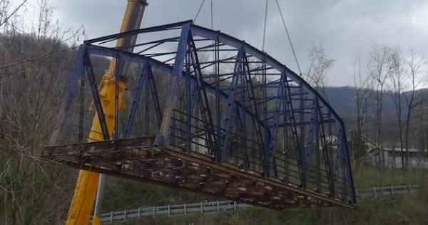 Un volo breve ma spettacolare, studiato nei minimi dettagli. Dieci minuti di suspense e di stupore, quando le corde in acciaio collegate alla potente gru posta a poca distanza dal torrente Ellero, hanno iniziato a tendersi ed i 300 quintali della struttura (...)