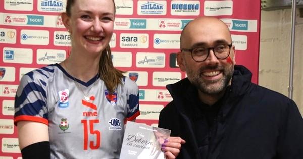 Berger premiata dal sindaco Robaldo come Mvp contro Imola - foto Peirone