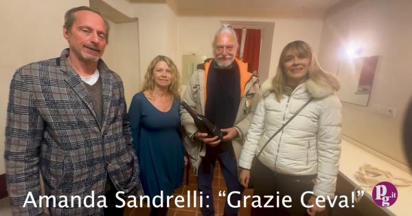 Amanda Sandrelli, Gigio Alberti, Alessandra Acciai e Alberto Giusta, nel backstage del Teatro Marenco ringraziano Ceva dopo la splendida serata con "Vicini di casa". "Teatro intimo e bello. Il pubblico? Ha risposto alla grande anche per noi era la centesima replica della commedia:ne siamo felici"