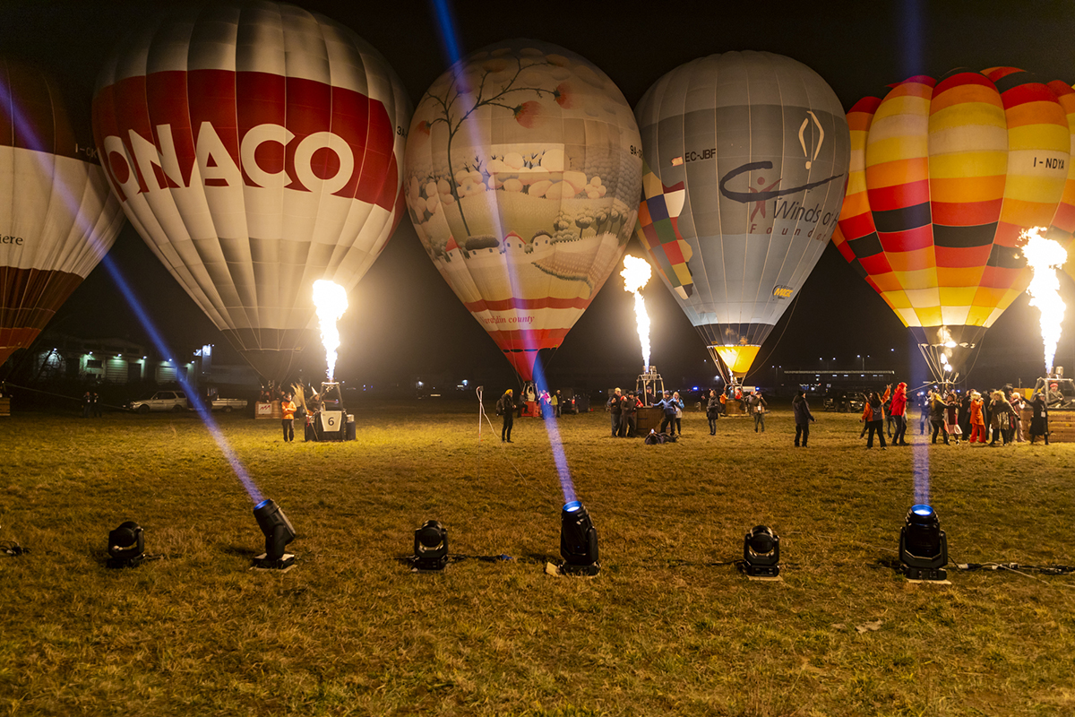 Ma la vera novità quest’anno arriva la sera del 3 gennaio: quando, per la prima volta, lo spettacolare Nightglow - il gonfiaggio notturno delle mongolfiere a tempo di musica - farà da evento apripista per il Raduno Aerostatico! Una vera e propria inaugurazione, con la presentazione dell’evento, il saluto dell’Aeroclub, delle autorità e dei partner e, a seguire, la festa di luci e musica, con le mongolfiere che daranno il via a una coreografia spettacolare con le fiamme dei loro bruciatori.