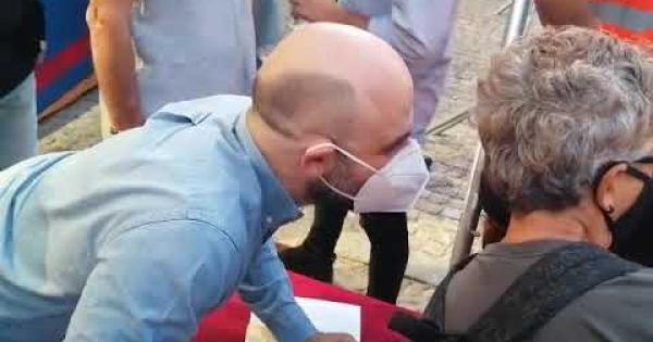 Saviano al Festival della TV e dei nuovi media 2021, terminato l'incontro sul palco, si ferma per firmare le copie del suo nuovo libro "Gridalo" e per salutare i suoi lettori