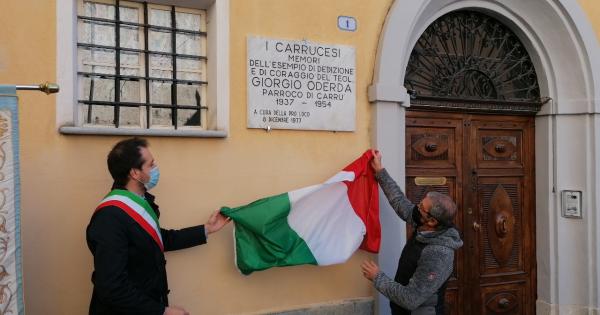 VIDEO - Carrù: scoperta la lapide in ricordo di don Giorgio Oderda traslata sulla facciata della casa canonica