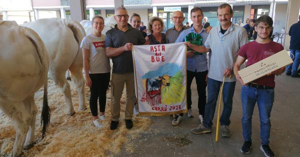 VIDEO - Carrù, Asta del Bue 2023: il bue grasso "Dritto" finisce in provincia di Como per 8.250 euro.