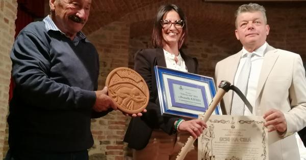 Il premio “Schi-na cinà” è andato a Brunella Ravera, "che grazie all'incontro con l'anima gemella, non ha esitato ad abbandonare il lavoro da responsabile amministrativa per seguire con passione vigneti e noccioleti nella pace delle colline delle Langhe".