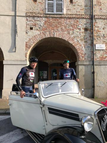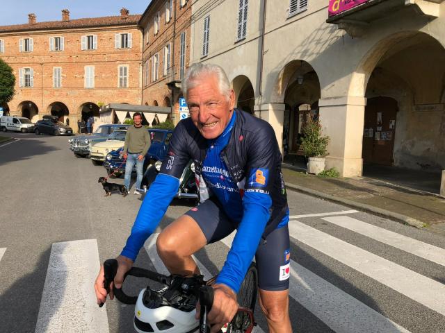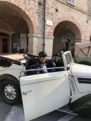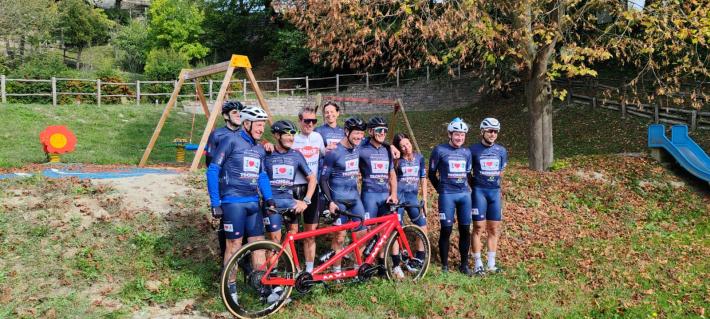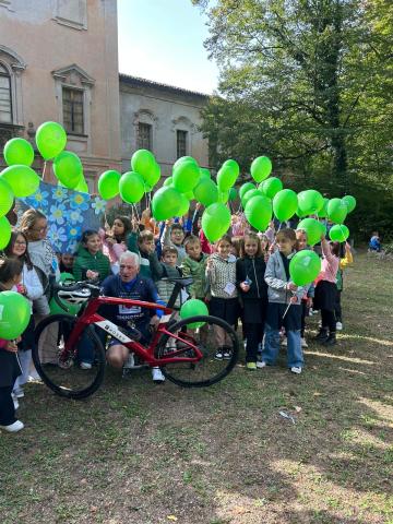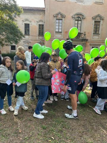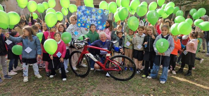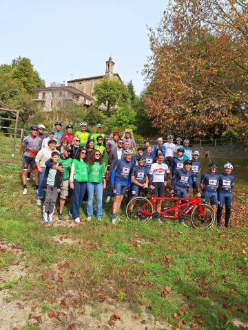 Prima sosta per la tappa del Charity Bike Tour della Fondazione per la ricerca sulla Fibrosi Cistica con tanti ciclisti amatoriali, accompagnati da campioni come Maurizio Fondriest, Gianni Bugno, Francesco Moser e Max Lelli.