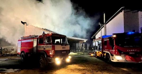 I vigili del fuoco di Mondovì ed i volontari di Morozzo e Dogliani sono impegnati nello spegnimento dell'incendio di un capannone adibito a ricovero di fienile in via Pignolli.