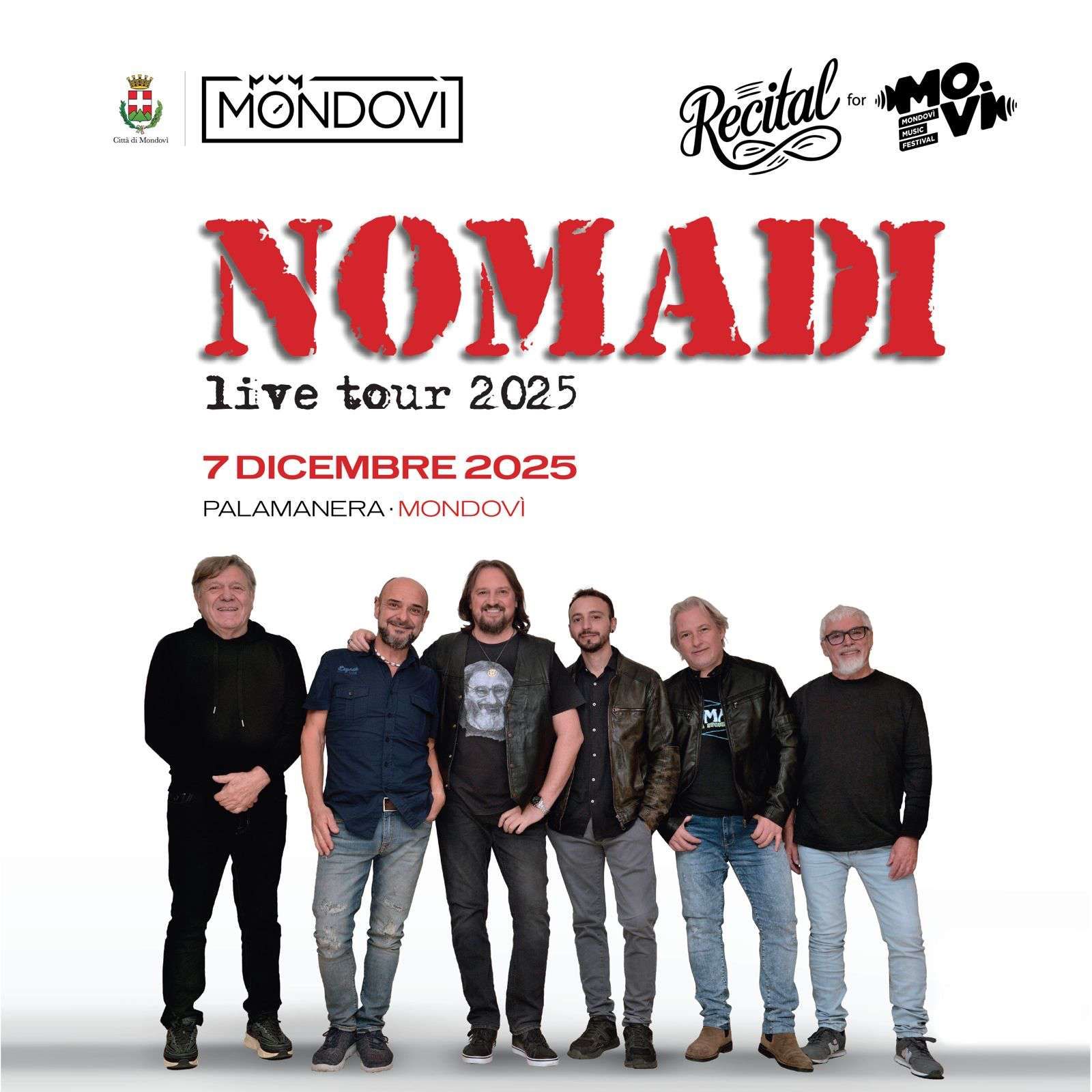 Il 7 dicembre Mondovì ospiterà una delle band più longeve d’Italia. i Nomadi. Fondati nei primi Anni ’60 da Beppe Carletti e Augusto Daolio, hanno esordito nel 1963 con un nome nato quasi per caso ma diventato presto simbolo del loro spirito itinerante: portare la musica ovunque, dai piccoli paesi ai grandi palchi delle città italiane. 52 lavori discografici tra album in studio, live e raccolte, e più di 15 milioni di copie vendute, i Nomadi sono un fenomeno unico nel panorama musicale italiano e internazionale, secondi per longevità solo ai Rolling Stones. Una carriera con cento fan club sparsi in tutta Italia, ma anche nota per l’impegno civile e umanitario e per il fatto che abbraccia generazioni diverse.