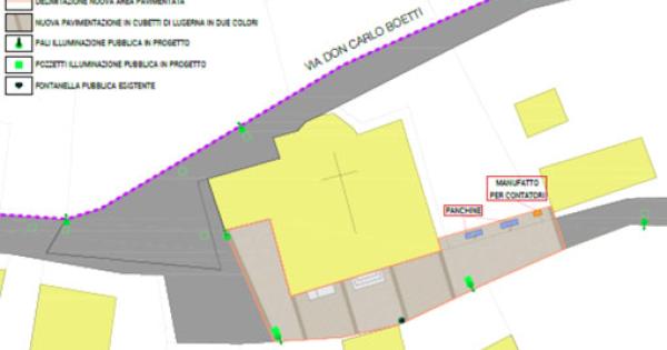 Nella foto la piantina con l’indicazione dei lavori che saranno effettuati nella zona attigua alla chiesa di Miroglio