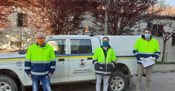 È cominciata giovedì a Monastero Vasco la consegna porta a porta delle mascherine acquistate dal Comune con fondi provenienti dalla rinuncia alle indennità di carica da parte del sindaco, della Giunta e dei consiglieri comunali del gruppo di maggioranza “Monastero siamo Noi”. Erano presenti il vicesindaco Giorgio Musso, il consigliere Pietro Danna, la consigliera Sabrina Basso ed il presidente della Pro Loco Andrea Musso. La consegna proseguirà nella giornata di oggi e nelle prossime ore tutti i residenti le avranno recapitate.