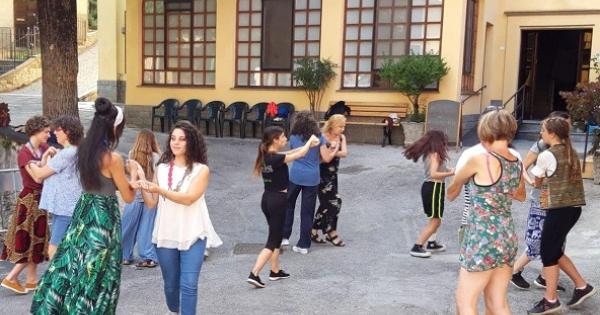 il workshop di danze irlandesi davanti all'Albergo Alpi