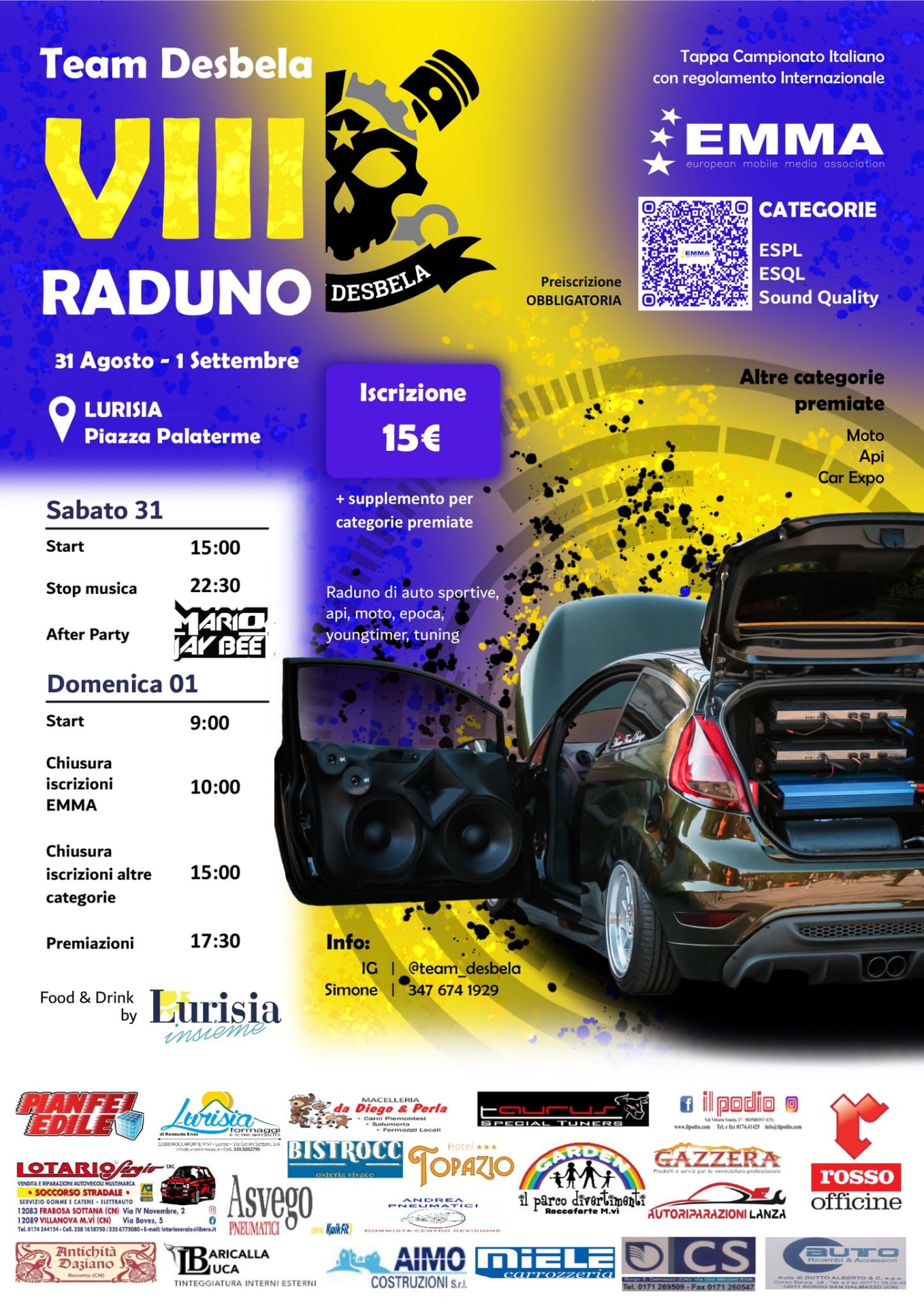 Domenica 1° settembre ci sarà la tappa del campionato più importante a livello internazionale del car audio (campionato Emma) per il quale sono attese moltissime auto, provenienti anche da Francia e Spagna.