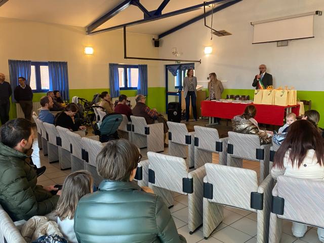 La comunità di Vicoforte ha dato il benvenuto, sabato mattina, ai 17 nuovi nati nel 2024. Il sindaco Gasco ha ringraziato le tante persone che hanno lavorato all’organizzazione della giornata: le assessore Barbara Nano e Daniela Tarò, la direttrice della Biblioteca Sara Rossi che ha riproposto il progetto “Nati per leggere”, la scuola, rappresentata dalla Dirigente Rossana Iadarola e da alcuni membri del Consiglio comunale dei ragazzi e Fabiola Dutto, che segue il doposcuola con lo staff de “Il bosco delle scoperte”.
