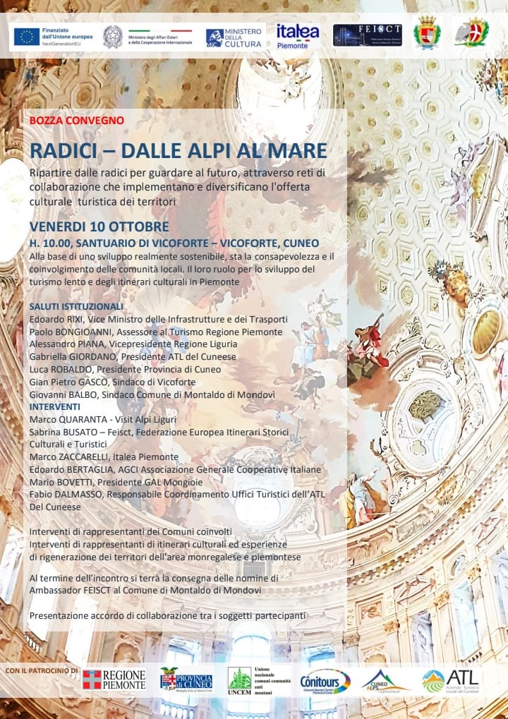 Venerdì (10 ottobre) il Comune di Montaldo di Mondovì, patria della RoAMArenca, verrà nominato Ambassador Feisct, all’incontro “Radici - Dalle Alpi al Mare” nella Casa Regina Montis Regalis a Vicoforte. Dalle ore 10 si terrà il convegno, organizzato dalla Federazione europea itinerari storici, culturali e turistici col sostegno del Ministero degli Affari Esteri, del Ministero della Cultura e del programma NextGenerationEU, in collaborazione con il Comune di Montaldo e la sua Commissione Cultura, appuntamento strategico per il rilancio del turismo lento e culturale nel Monregalese e in Piemonte. Un’occasione per condividere le linee guida per la valorizzazione degli itinerari culturali dell’area, con l’obiettivo di costruire reti territoriali che coniughino sostenibilità, identità locale e innovazione...