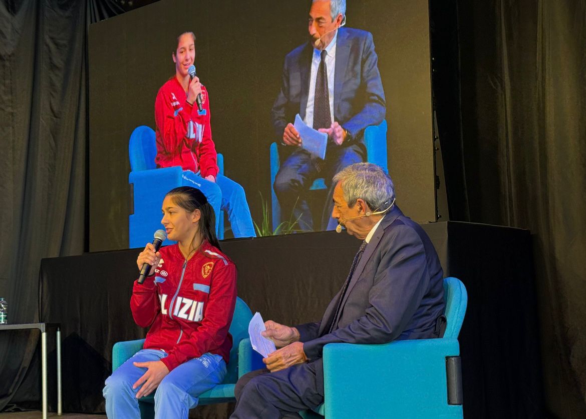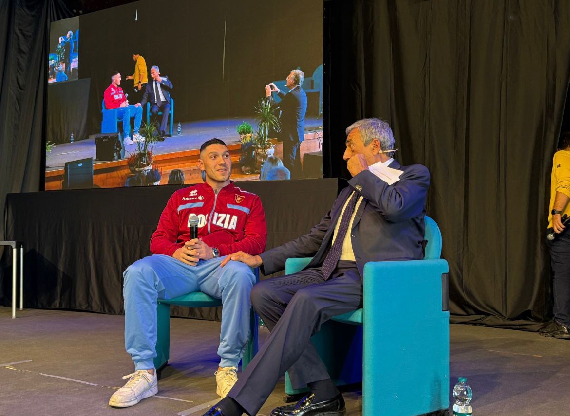 Altri grandi nomi dello sport nel pomeriggio sul palco di Frabosa Sottana per il Galà della Castagna. Ai microfoni di Marino Bartoletti si sono raccontati il giovane nuotatore Simone Cerasuolo e la giovane ginnasta Simona Raffaeli. Spazio, quindi, al giornalista Francesco Repice, voce storica di RadioRai e icona per tanti appassionati che nel 2025 scelgono ancora la radio per seguire in diretta i match della propria squadra del cuore.