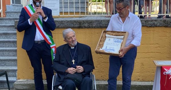 Chiusano di sentiva già da un pezzo, dopo 35 anni di servizio presso la parrocchia di Sant’Antonino. Ora lo è anche “formalmente”. Monsignor Mario Silvano Restagno ha ricevuto la cittadinanza onoraria del Comune di Chiusa Pesio questa mattina, deliberata all’unanimità da un Consiglio “ad hoc” convocato presso il cortile della Casa di Riposo “La Meridiana”, dove alloggia.