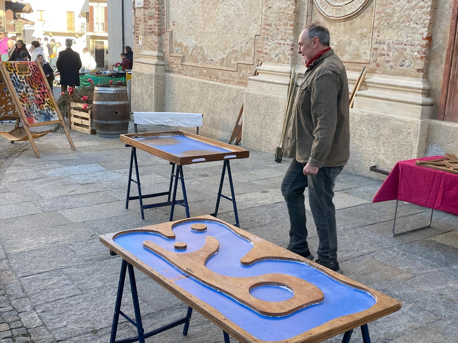 Il sole ha baciato la domenica di Pianfei, tutta dedicata ai mercatini natalizi. Dopo il grande successo della Crusà Run di ieri (con un centinaio di iscritti), piazza Vittorio Emanuele, piazza Caduti e via Roma sono state invase dalle bancarelle di 80 espositori di prodotti tipici e artigianato locale. Imponente il lavoro dei volontari pianfeiesi, una sessantina in tutto, impegnati nei preparativi della manifestazione. Il loro impegno è stato sottolineato dal sindaco Marco Turco durante l’inaugurazione ufficiale: «È nato tutto 28 anni fa dalla realizzazione del nostro caratteristico presepe meccanico nella Crusà – ha detto -, da lì si è aggiunto pian piano tutto il resto fino ad arrivare alla splendida manifestazione che è diventata oggi. È bellissimo vedere tutta questa aggregazione, a cominciare dal grande albero di lana cucito a mano sulla rotonda all’ingresso del paese tutto è fatto dai volontari, dirvi grazie è il minimo».
