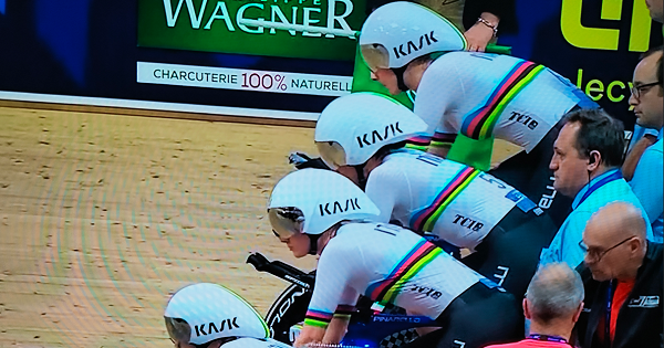 Troppo forti le britanniche (Archibald, Evans, Knight e Morris), anche se nel finale hanno avuto qualche incertezza: il margine però era già tanto ed il quartetto azzurro dell'inseguimento, ovvero le Rocket Girls campionesse del mondo in carica, si è accontentato dell'argento. La peveragnese Elisa Balsamo con Vittoria Guazzini, Martina Fidanza e Martina Alzini (che ha sostituito Letizia Paternoster) hanno lottato fino al terzo chilometro, ma già al lancio la Gran Bretagna era avanti (756 millesimi di vantaggio al primo chilometro) ed il gap si è poi allargato via via fino ad oltre 2": 4'13"890 contro il 4'16"018 delle italiane.