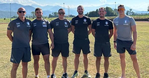 Giovanni Mulassano (primo a sinistra) con gli atleti azzurri al Beila
