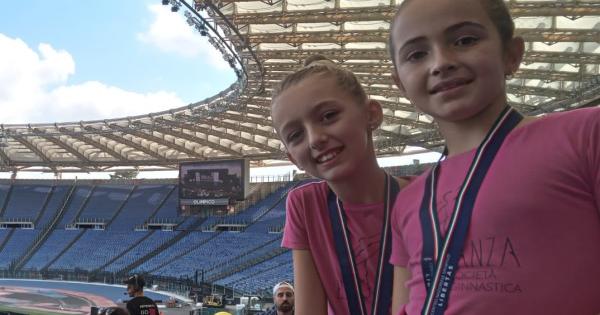 I colori di Eleganza ASD sono approdati allo stadio Olimpico di Roma grazie ad Amalia Cravero e Stella Lubatti, premiate per meriti sportivi insieme ai campioni nazionali Libertas. La società di Mondovì era l’unica affiliata della ginnastica ritmica piemontese ad avere l’onore essere presente a questa straordinaria manifestazione. Cravero e Lubatti hanno ottenuto la medaglia d’oro per l’ottima prestazione nel cerchio a coppie nella gara nazionale di maggio