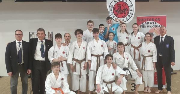 La domenica del Karate monregalese: 300 atleti di Piemonte e Valle d'Aosta hanno partecipato ai Regionali S.k.i.-i al PalaManera di Mondovì organizzati dalla Shotokan Karate Funakoshi di Magliano Alpi, dando vita ad un bello spettacolo per il pubblico presente. Al mattino i bambini (molti all’esordio assoluto, aiutati dai loro istruttori) dalla cintura bianca alla nera fino ai 14 anni erano impegnati nel Kata e nel Kumite e nel pomeriggio si sono confrontate sui sei tatami le categorie Juniores, Adulti e Master. Il Dojo maglianese ha conquistato ben tre titoli regionali nel Kata per le cinture marroni con Larisa Acsinte negli Adulti, Federica Musso e Francesco Sigotti negli Juniores e colto quattro argenti (due ancora con Musso e Acsinte nel Kumite) e sei bronzi..