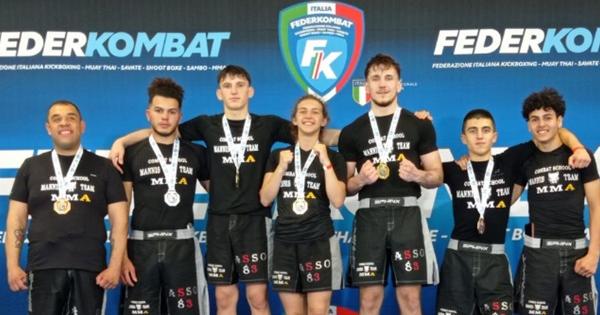 Nel fine settimana si sono disputati i campionati italiani e il Trofeo Italia di Shoot Boxe/Kick Jitsu Federkombat nel palazzetto di Jesolo e ben sette fighter della Combat School Mannis Team di Sant’Albano Stura hanno ottimamente figurato ottenendo tre medaglie d’oro, una di argento e due di bronzo. Titoli per Sofia Dolce nella -61 kg Junior e nel Trofeo Italia per Endrion Calaj (-78 kg Senior) e Leo Calaj (-71 kg Junior); argento tricolore per Roberto Mondino nella -86 kg Senior, poi sempre nel Trofeo Italia
