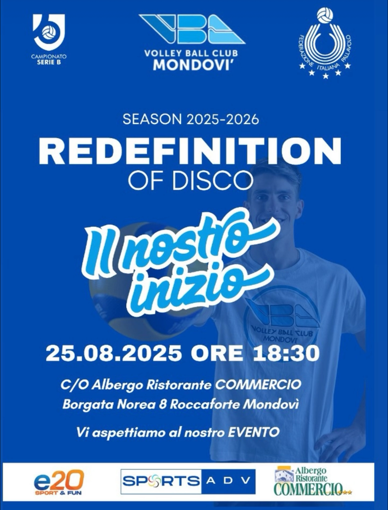 Alle 18.30, all'Albergo ristorante Commercio a Roccaforte Mondovì, ci sarà l'evento "Redefinition of Disco", al quale saranno presenti i giocatori e gli allenatori della prima squadra, lo staff e gli allenatori delle giovanili. Durante la prima parte della serata i tifosi potranno assistere alla presentazione degli atleti, mentre nella seconda parte i giornalisti avranno la possibilità di intervistare i protagonisti in vista dell'inizio della preparazione e del campionato.