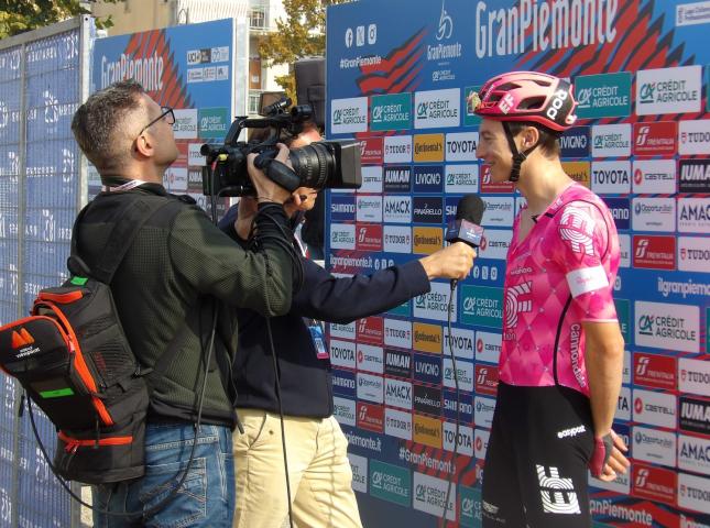 La Langa ha offerto per il Gran Piemonte 2025 il meglio dei suoi paesaggi in una bella giornata di sole e sul palco di Dogliani sono salite anche le classi terza A e B della scuola “Taricco” premiati per il progetto BiciScuola di RCS ed applauditi dai tantissimi compagni di tutto l’istituto scolastico.