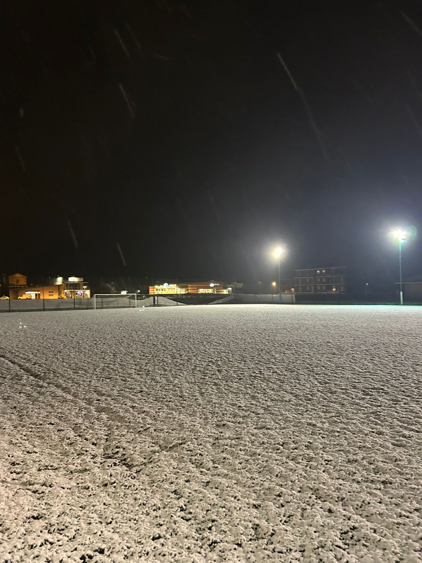 Ieri sera, 21 novembre, la Terza Categoria ha provato a giocare: il Dogliani era in vantaggio 1-0 con il Cisterna (gol di Georgiev al 12') e di un uomo (espulso il portiere ospite al 39') quando l'arbitro a 5' dall'intervallo ha deciso per l'impraticabilità del campo (si ripartirà da regolamento con questa situazione). A Trinità rinviato sempre per la neve (nella foto sotto il terreno di gioco) il derby con il Carrù Magliano U.21. Rinvio anche a Bernezzo per il San Pedro nel girone D.